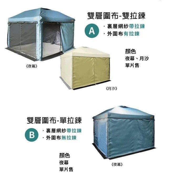 ◎先前已購買過夜幕款的雙用圍布、連接布,若不確定要配合第幾代圍布,可以請拍拉鍊照片與客服聯繫,幫您確認。