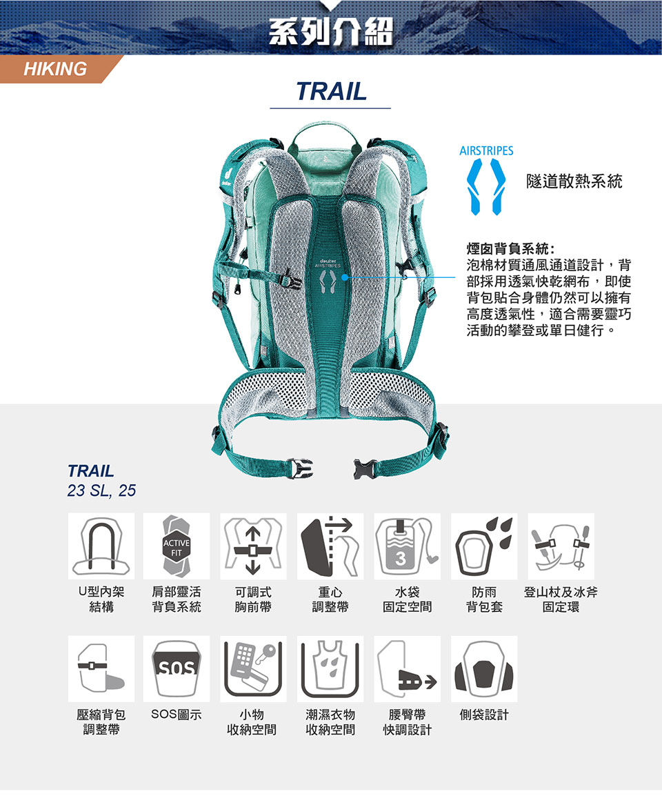 Deuter TRAIL 女 23SL輕量拔熱透氣背包 3440424 葡萄乾 登山包 背包