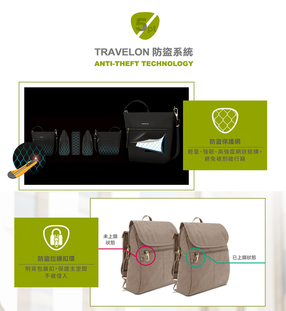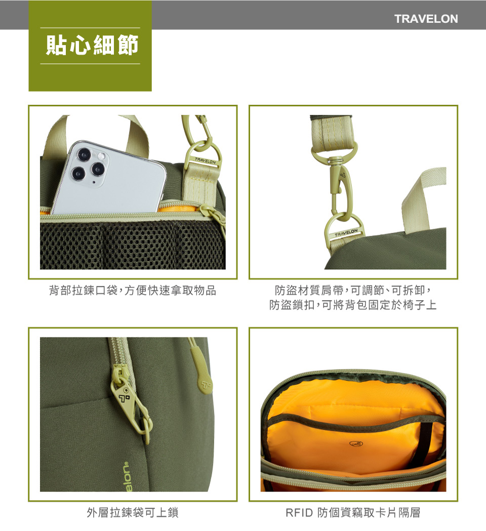 可調式肩帶具有鎖定扣具,可將您的包固定在任何椅背或固定物體上